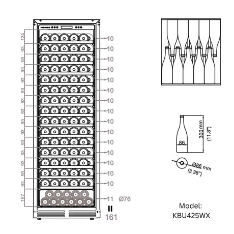KingsBottle Upright Single Zone Large Wine Cooler With Low-E Glass Door